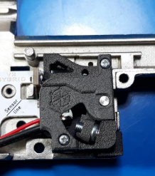 PERUN HYBRID V2を組込後、トリガーにはマグネットホルダーを付けない状態でメカボックスに取り付け、その上からClicker V2を取り付けます。